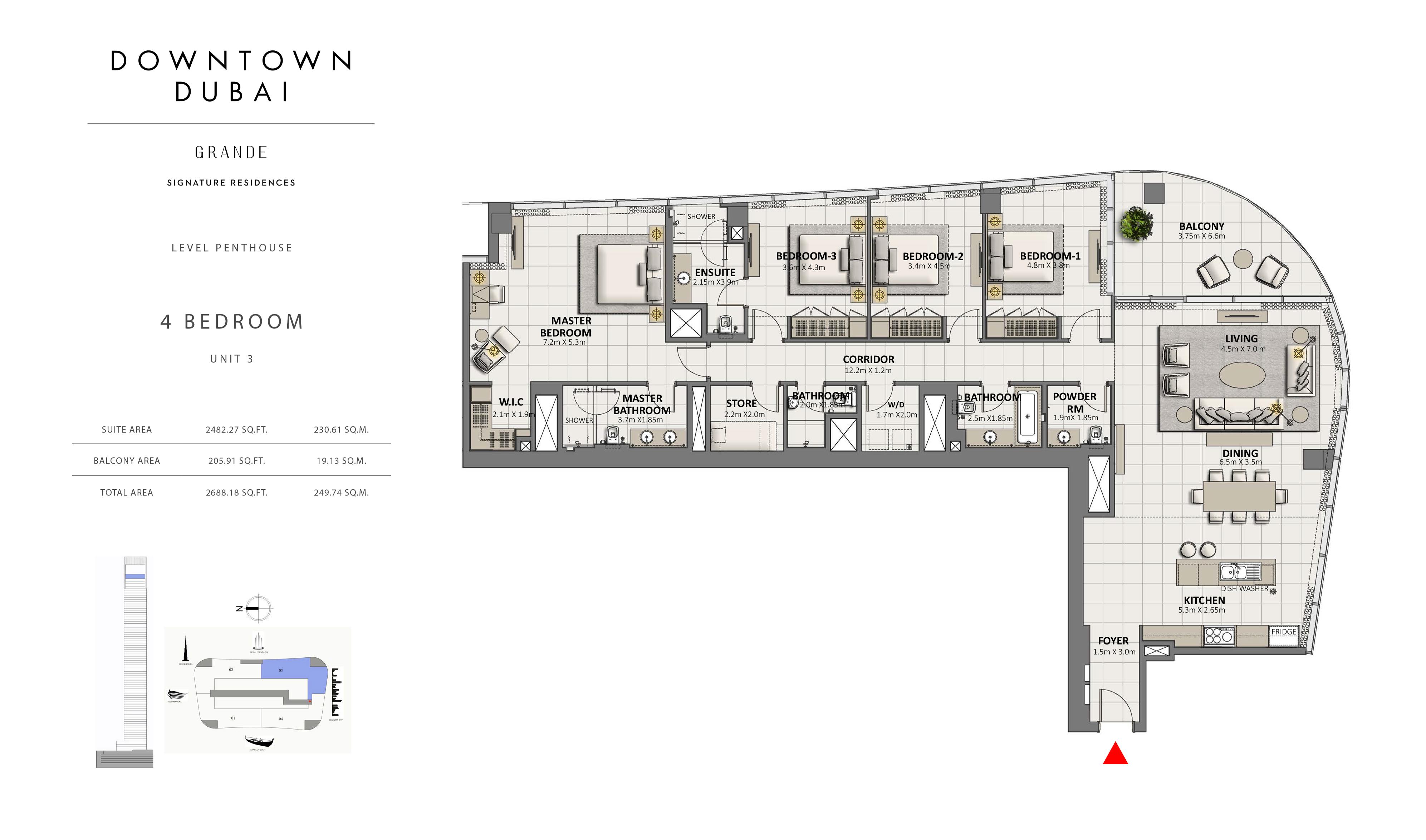 Grande Signature Residences is the tallest towers located in the heart of Downtown Dubai, it includes 2 & 3-bedroom apartments from 10 - 30 floor and 4-bedroom penthouses on the 70 & 71 floor. This premium building is provided an unobstructed view of the Burj Khalifa and Downtown Dubai. This ultra-modern building represents a brand-new vision for urban living.